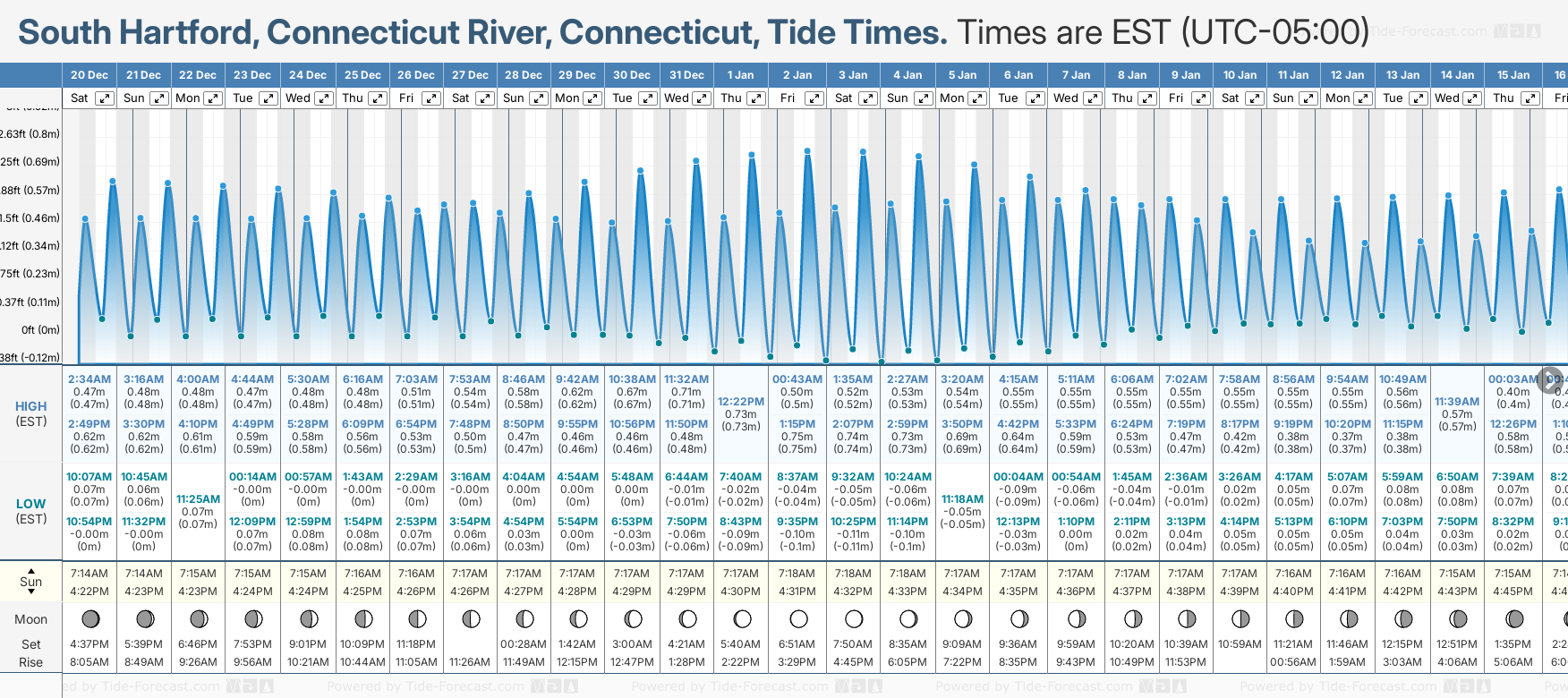 West Hartford tide times for December and January