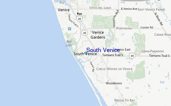 Use this relief map to navigate to tide stations, surf breaks and cities that are in the area of South Venice.