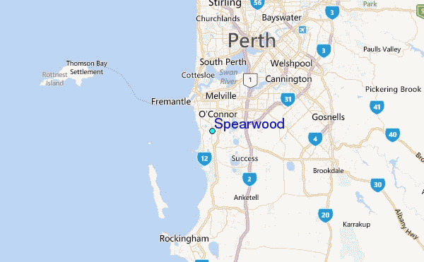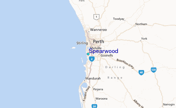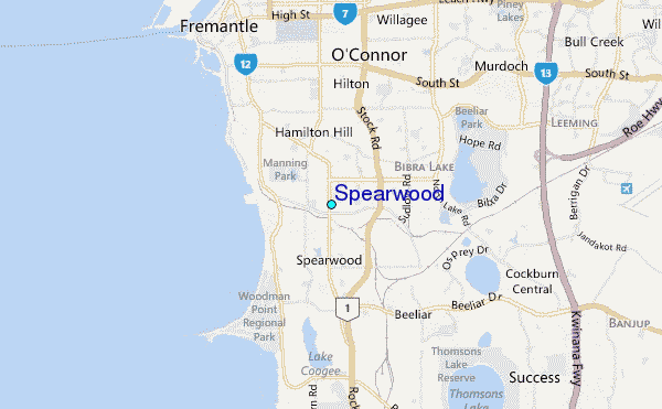 Use this relief map to navigate to tide stations, surf breaks and cities that are in the area of Spearwood.