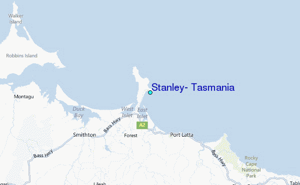 Other Nearby Locations' tide tables and tide charts to Stanley, Tasmania: