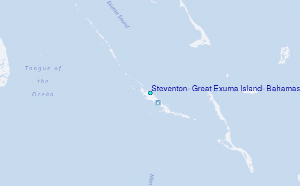 Use this relief map to navigate to tide stations, surf breaks and cities that are in the area of Steventon, Great Exuma Island, Bahamas.