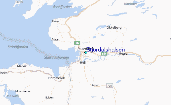 Use this relief map to navigate to tide stations, surf breaks and cities that are in the area of Stjordalshalsen.