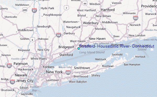 Use this relief map to navigate to tide stations, surf breaks and cities that are in the area of Stratford, Housatonic River, Connecticut.