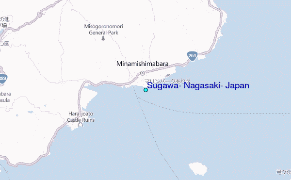 Use this relief map to navigate to tide stations, surf breaks and cities that are in the area of Sugawa, Nagasaki, Japan.