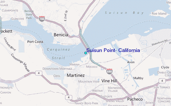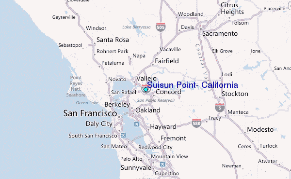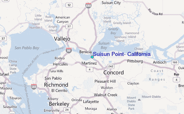 Use this relief map to navigate to tide stations, surf breaks and cities that are in the area of Suisun Point, California.
