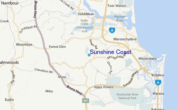 Use this relief map to navigate to tide stations, surf breaks and cities that are in the area of Sunshine Coast.