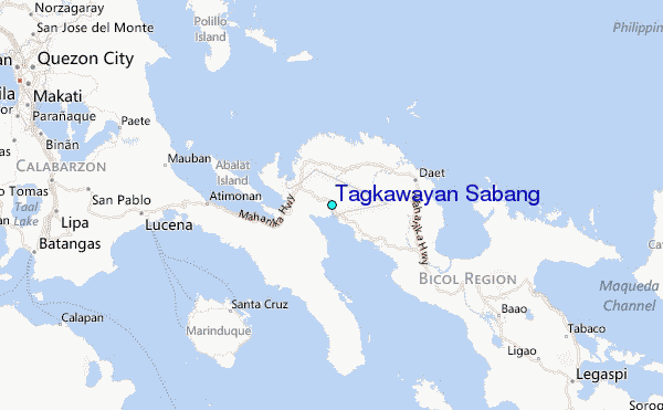 Use this relief map to navigate to tide stations, surf breaks and cities that are in the area of Tagkawayan Sabang.