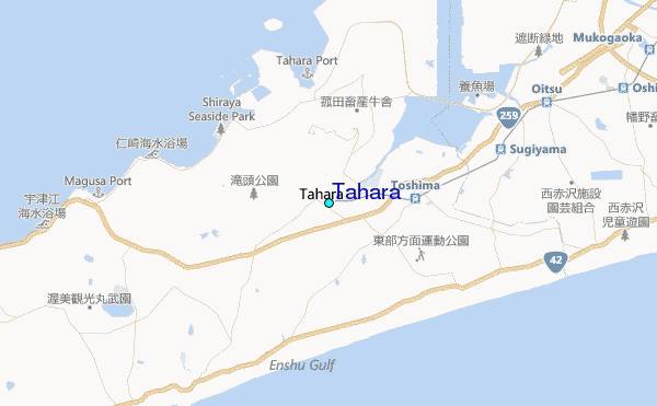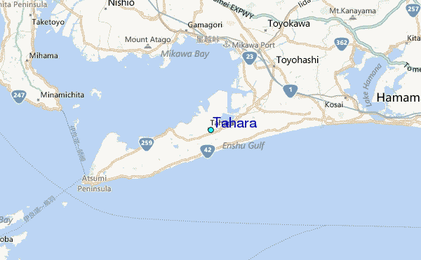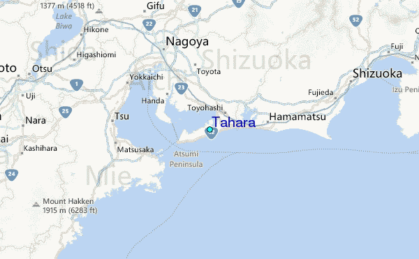 Use this relief map to navigate to tide stations, surf breaks and cities that are in the area of Tahara.