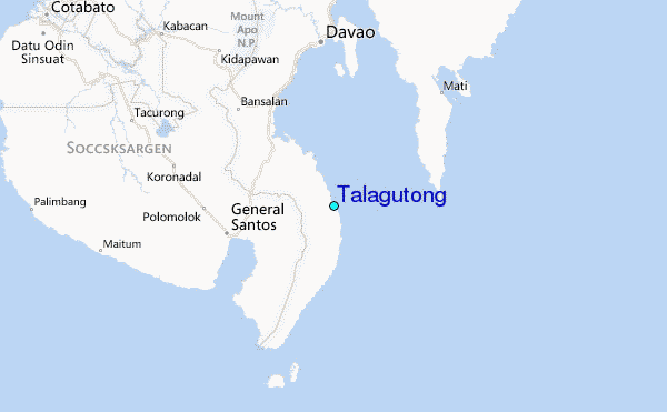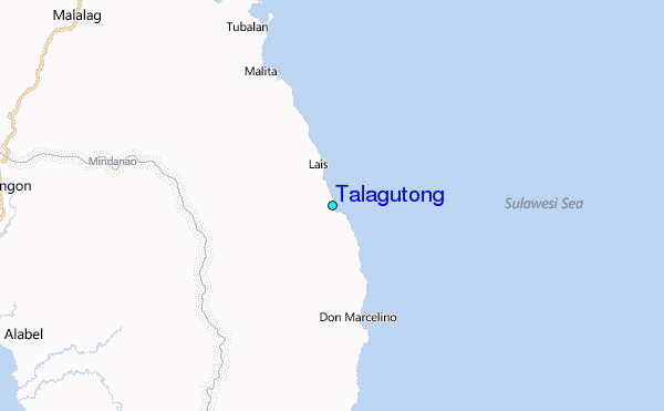 Use this relief map to navigate to tide stations, surf breaks and cities that are in the area of Talagutong.