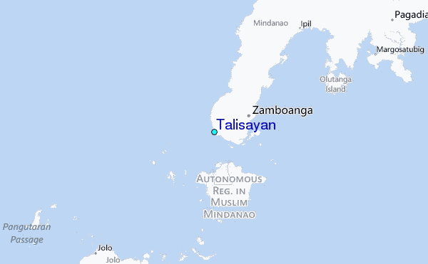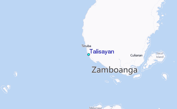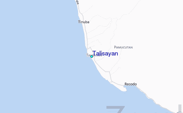 Use this relief map to navigate to tide stations, surf breaks and cities that are in the area of Talisayan.