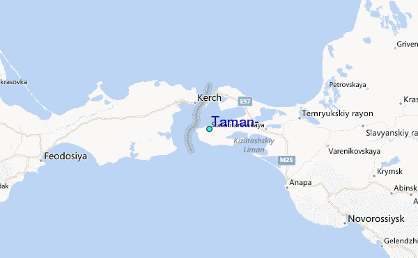 Use this relief map to navigate to tide stations, surf breaks and cities that are in the area of Taman'.