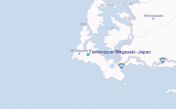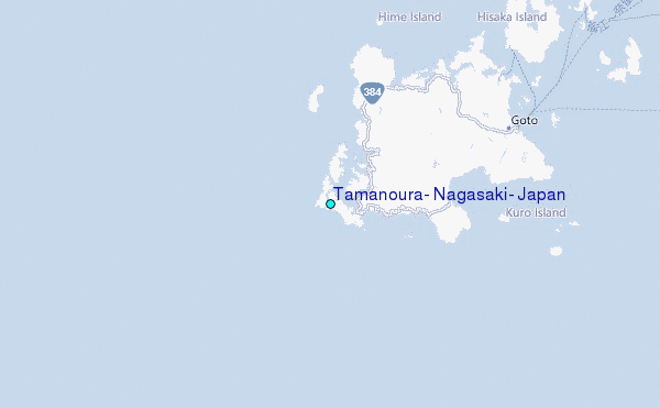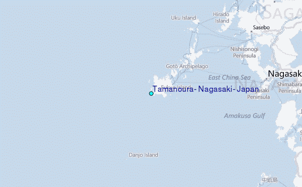 Use this relief map to navigate to tide stations, surf breaks and cities that are in the area of Tamanoura, Nagasaki, Japan.