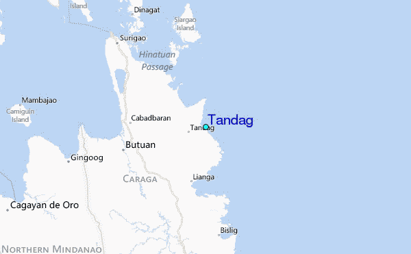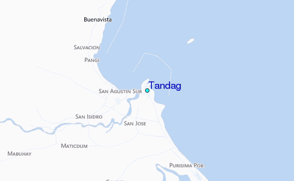 Use this relief map to navigate to tide stations, surf breaks and cities that are in the area of Tandag.