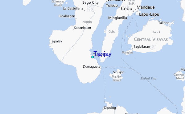 Use this relief map to navigate to tide stations, surf breaks and cities that are in the area of Tanjay.