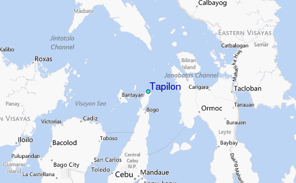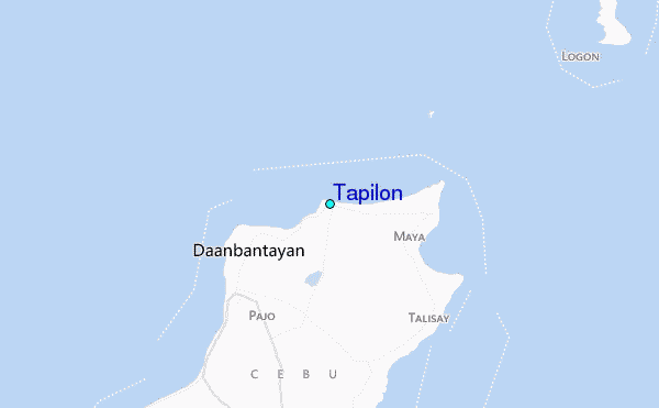 Use this relief map to navigate to tide stations, surf breaks and cities that are in the area of Tapilon.
