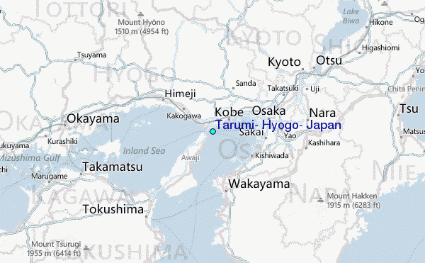 Use this relief map to navigate to tide stations, surf breaks and cities that are in the area of Tarumi, Hyogo, Japan.