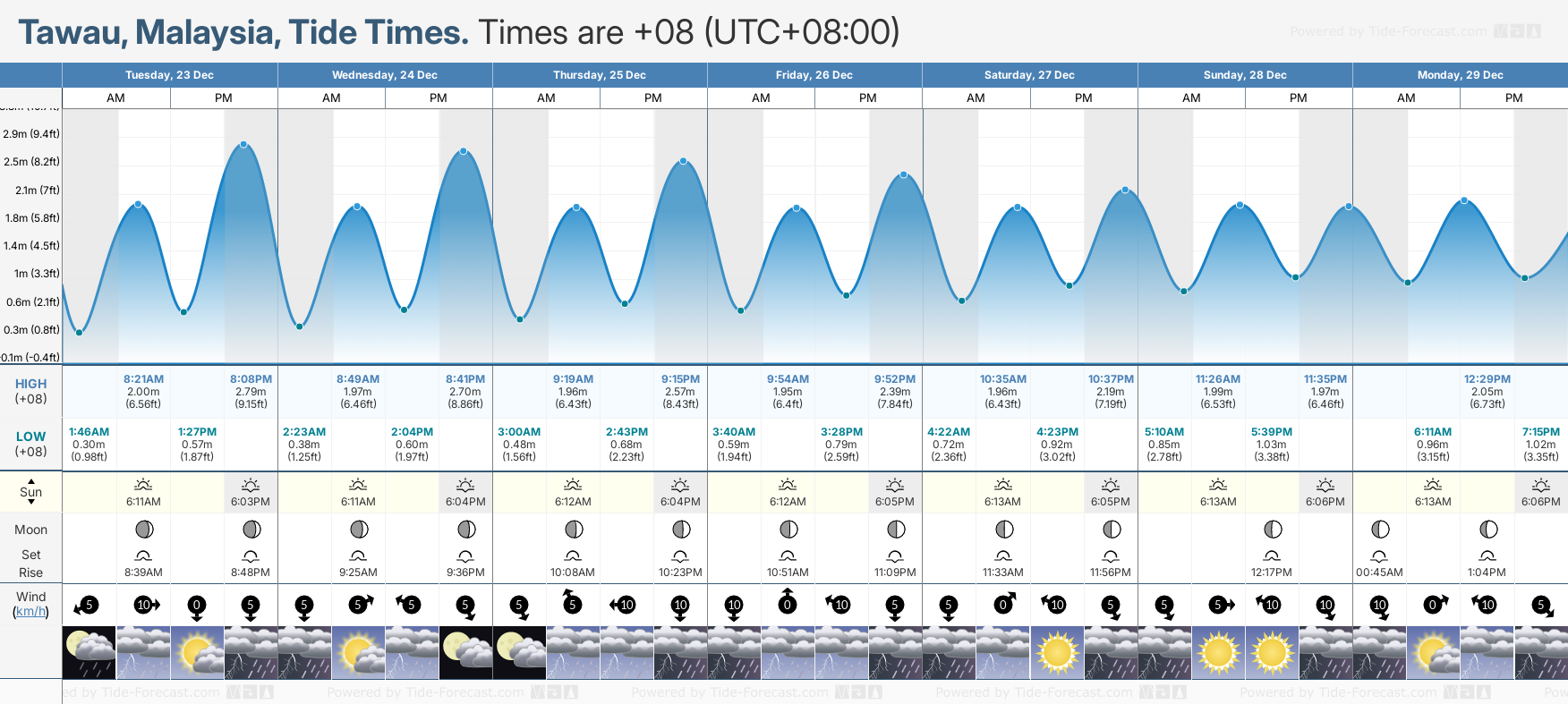 NOTE: Use of this site for Tawau, Malaysia tide times is subject to our terms.
