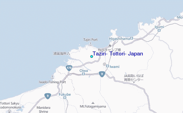 Use this relief map to navigate to tide stations, surf breaks and cities that are in the area of Taziri, Tottori, Japan.