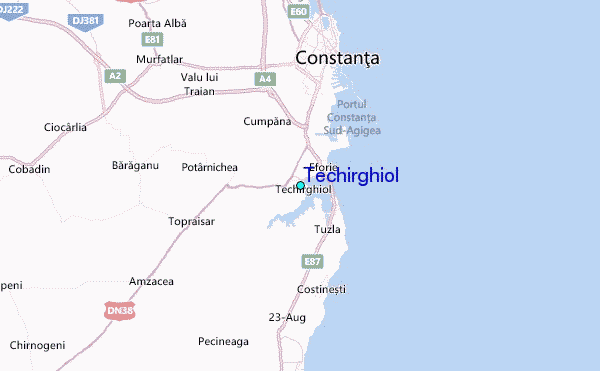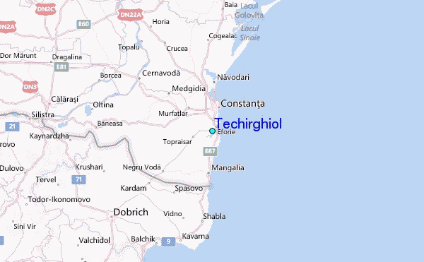 Use this relief map to navigate to tide stations, surf breaks and cities that are in the area of Techirghiol.