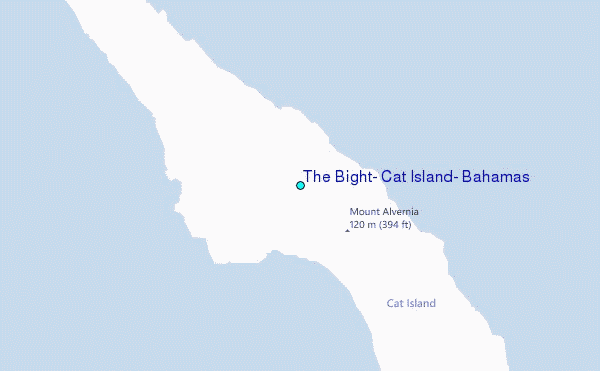 Use this relief map to navigate to tide stations, surf breaks and cities that are in the area of The Bight, Cat Island, Bahamas.