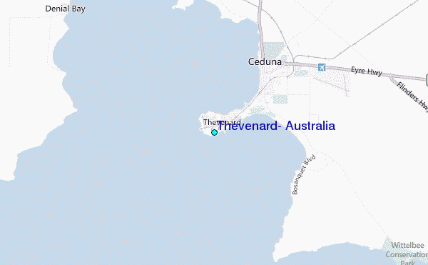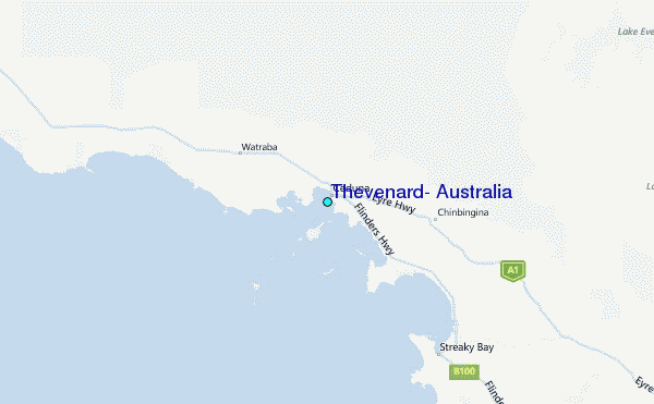 Use this relief map to navigate to tide stations, surf breaks and cities that are in the area of Thevenard, Australia.