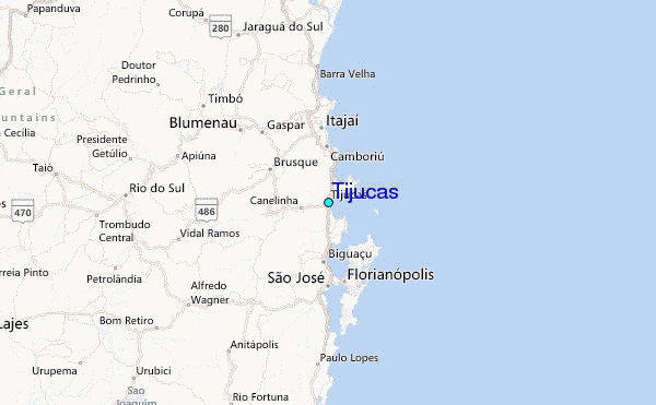 Use this relief map to navigate to tide stations, surf breaks and cities that are in the area of Tijucas.