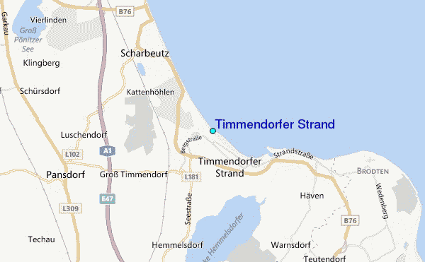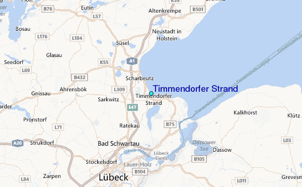 Use this relief map to navigate to tide stations, surf breaks and cities that are in the area of Timmendorfer Strand.