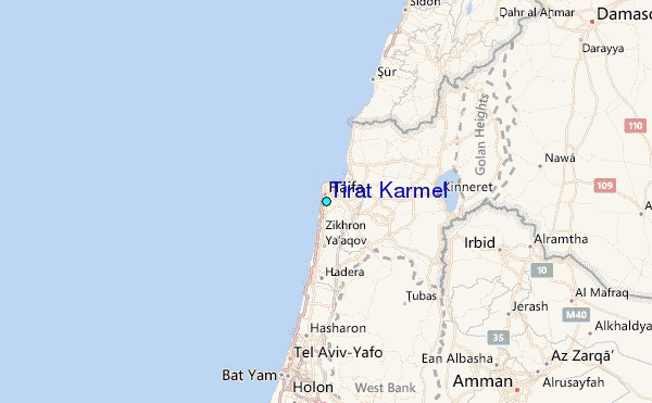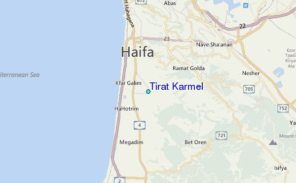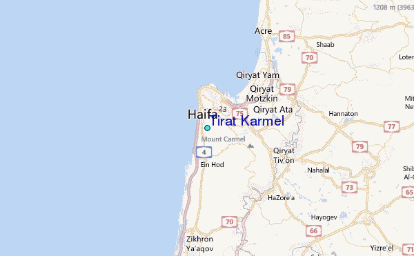Use this relief map to navigate to tide stations, surf breaks and cities that are in the area of Tirat Karmel.