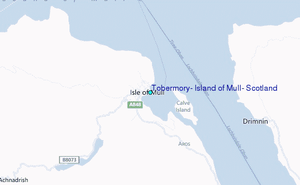 Use this relief map to navigate to tide stations, surf breaks and cities that are in the area of Tobermory, Island of Mull, Scotland.