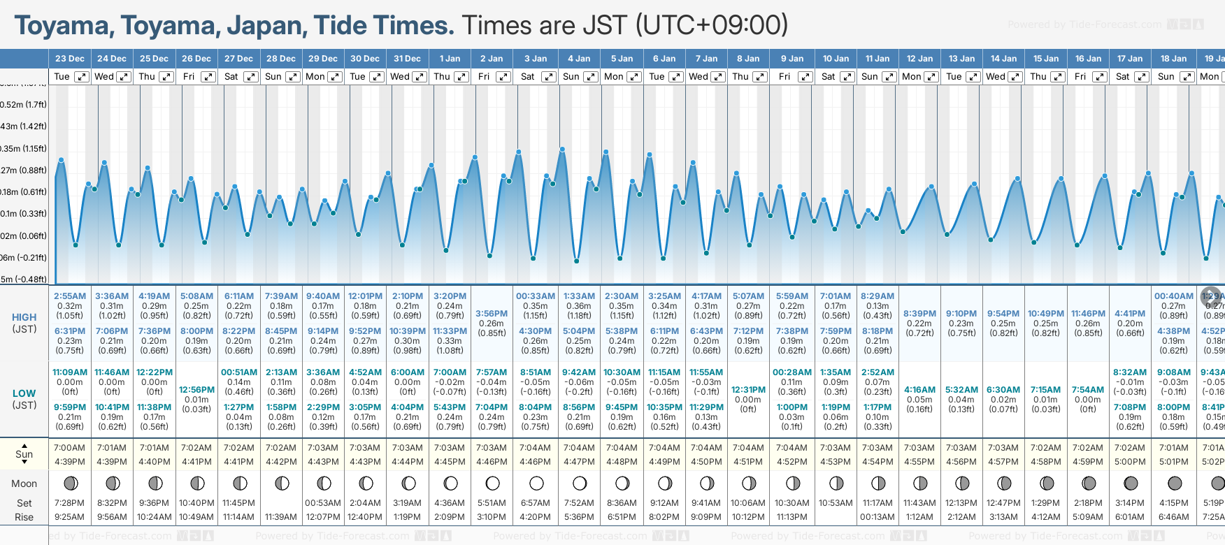 Tide Times for Toyama-shi: Sunday 04 January 2026