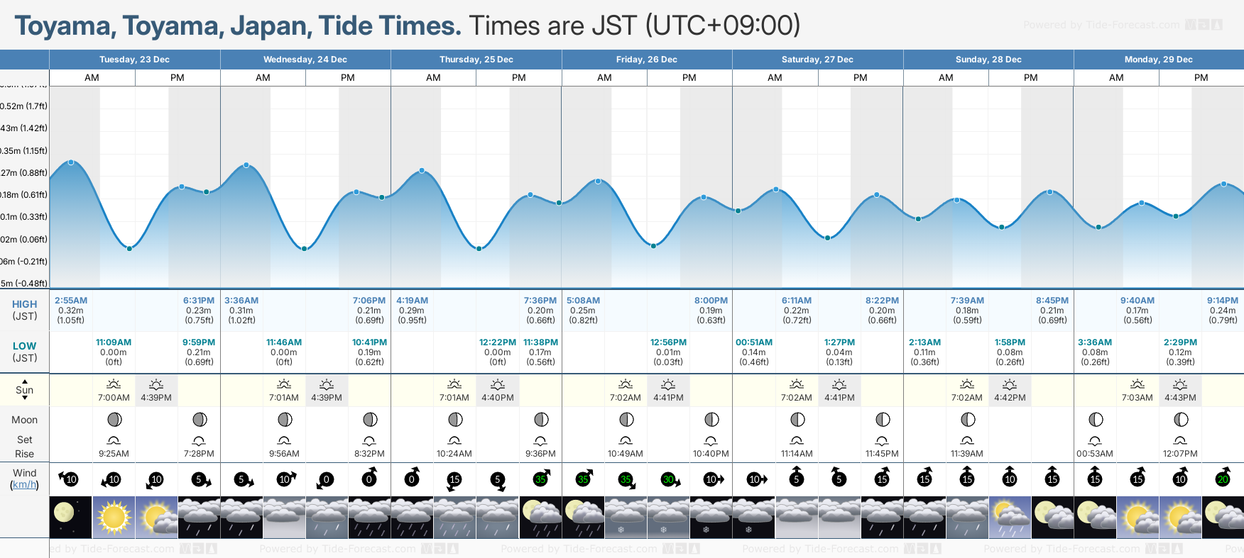 Tide Times for Toyama-shi: Monday 05 January 2026