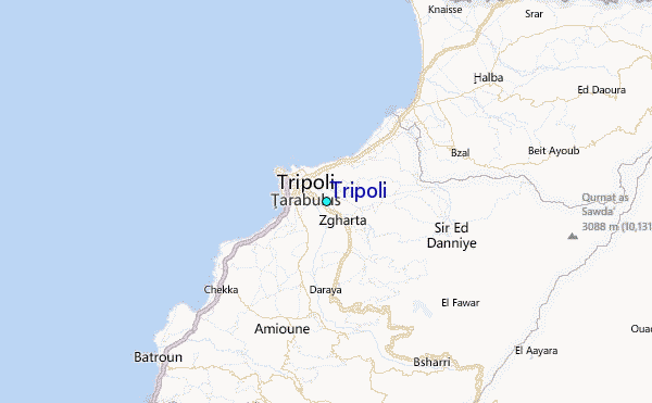 Use this relief map to navigate to tide stations, surf breaks and cities that are in the area of Tripoli.