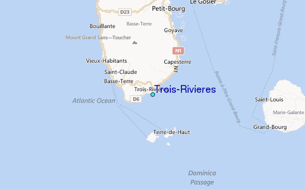 Use this relief map to navigate to tide stations, surf breaks and cities that are in the area of Trois-Rivieres.