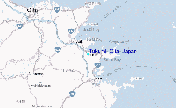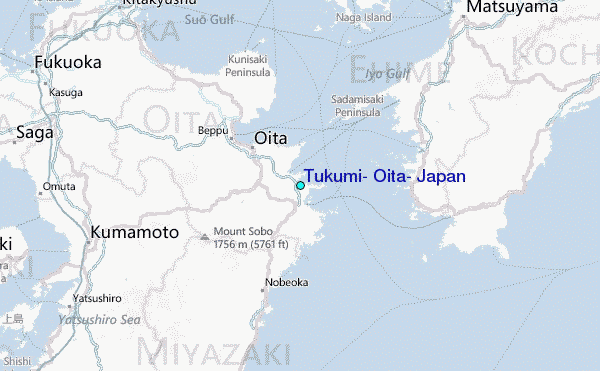Use this relief map to navigate to tide stations, surf breaks and cities that are in the area of Tukumi, Oita, Japan.
