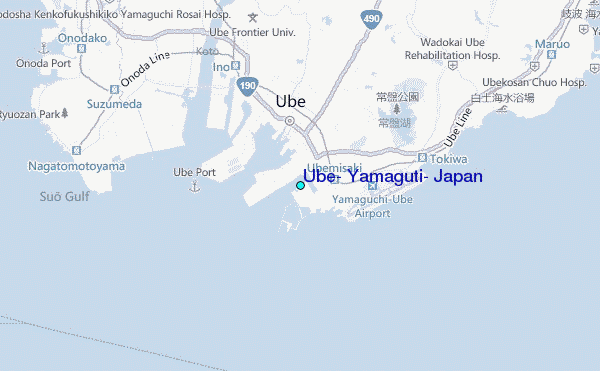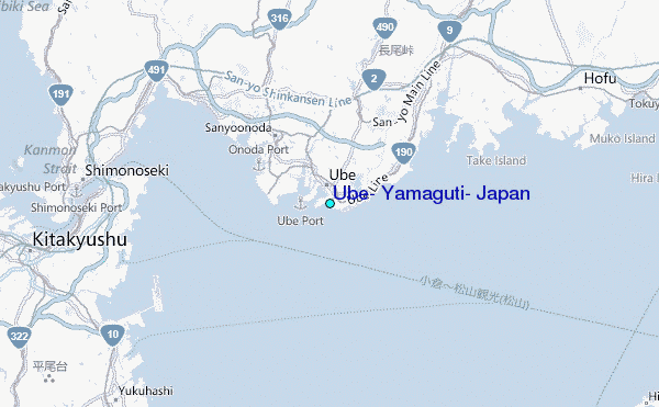 Use this relief map to navigate to tide stations, surf breaks and cities that are in the area of Ube, Yamaguti, Japan.