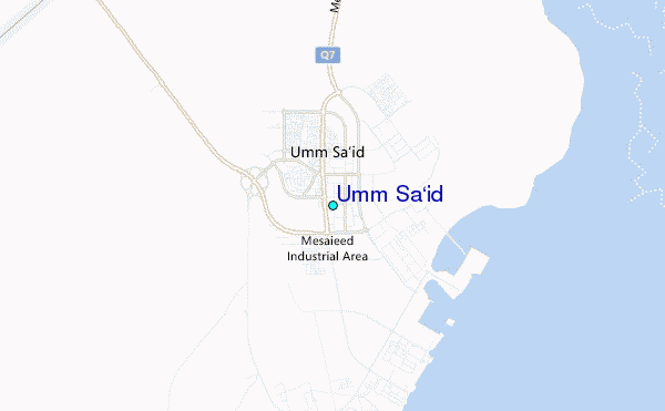 Use this relief map to navigate to tide stations, surf breaks and cities that are in the area of Umm Sa‘īd.
