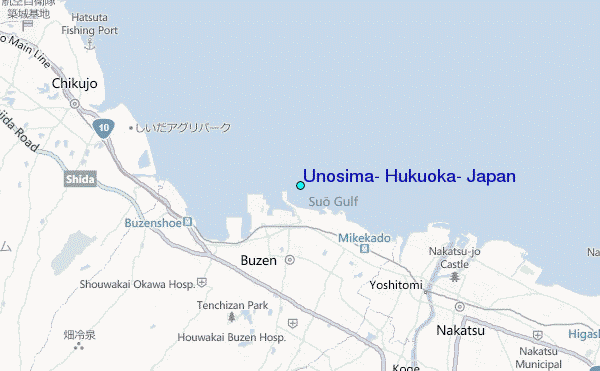 Use this relief map to navigate to tide stations, surf breaks and cities that are in the area of Unosima, Hukuoka, Japan.
