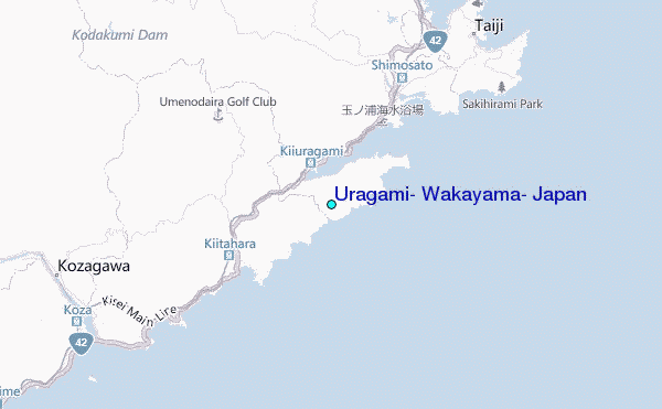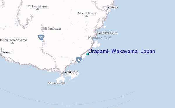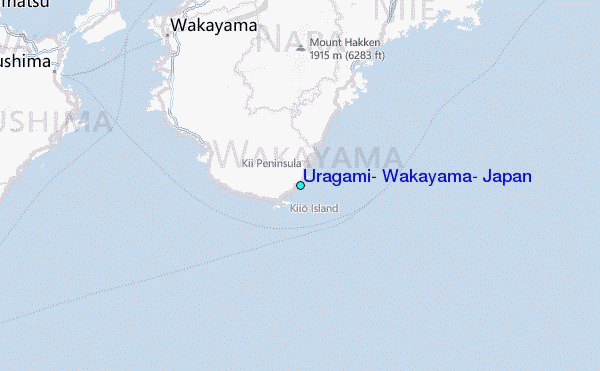 Use this relief map to navigate to tide stations, surf breaks and cities that are in the area of Uragami, Wakayama, Japan.