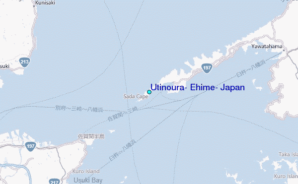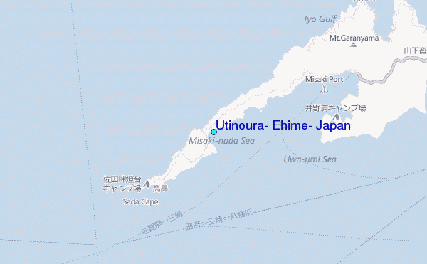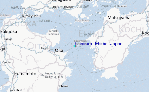 Use this relief map to navigate to tide stations, surf breaks and cities that are in the area of Utinoura, Ehime, Japan.