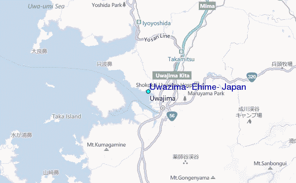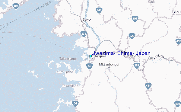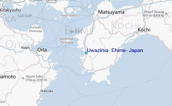 Use this relief map to navigate to tide stations, surf breaks and cities that are in the area of Uwazima, Ehime, Japan.