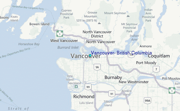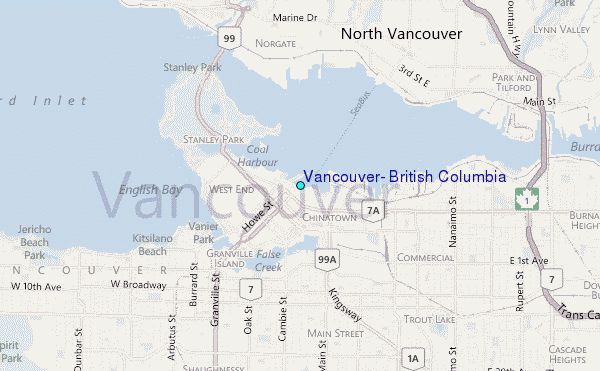 Other Nearby Locations' tide tables and tide charts to Vancouver, British Columbia: