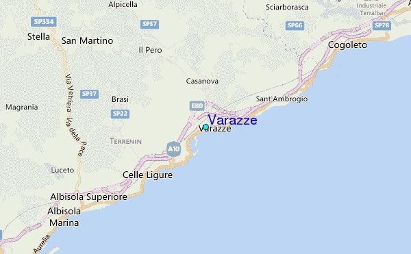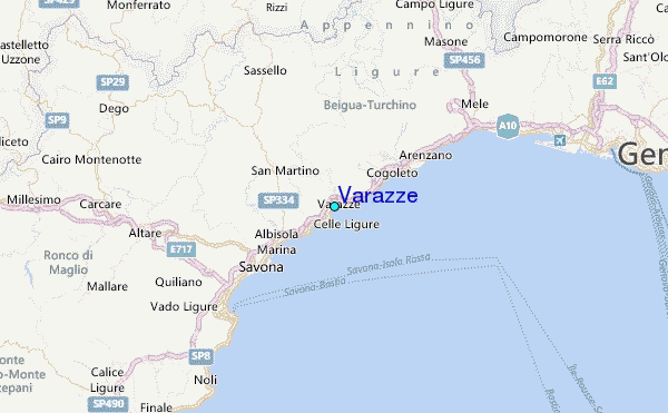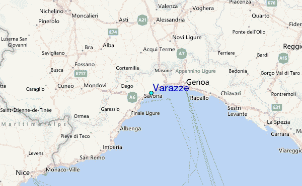 Use this relief map to navigate to tide stations, surf breaks and cities that are in the area of Varazze.