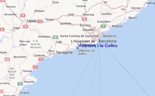 Use this relief map to navigate to tide stations, surf breaks and cities that are in the area of Vilanova i la Geltru.