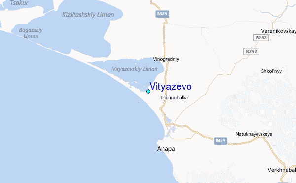 Use this relief map to navigate to tide stations, surf breaks and cities that are in the area of Vityazevo.
