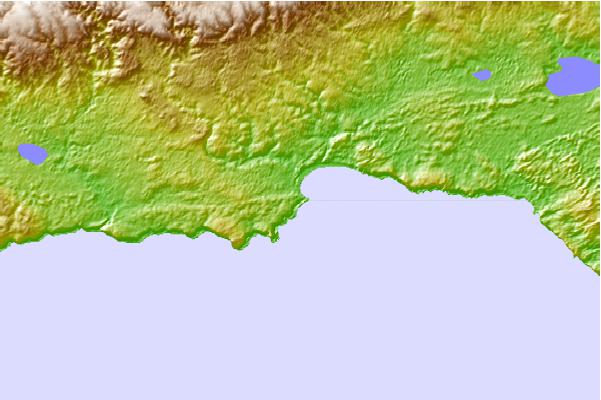 Use this relief map to navigate to tide stations, surf breaks and cities that are in the area of Vivonne Bay, Australia.