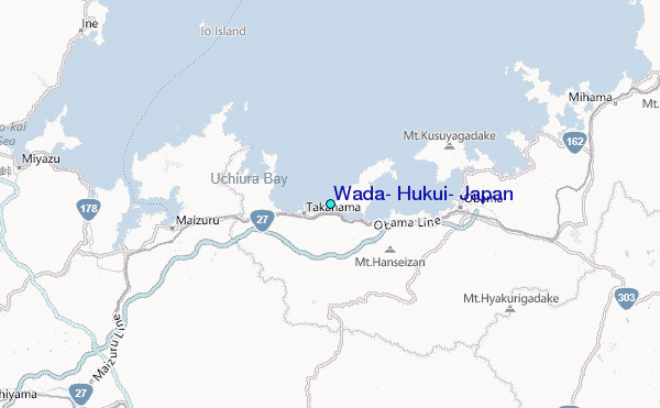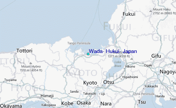 Use this relief map to navigate to tide stations, surf breaks and cities that are in the area of Wada, Hukui, Japan.