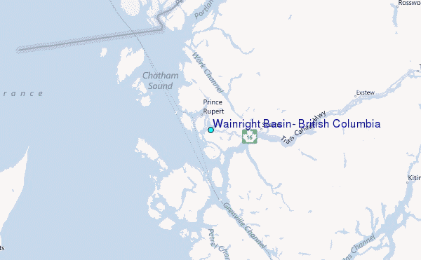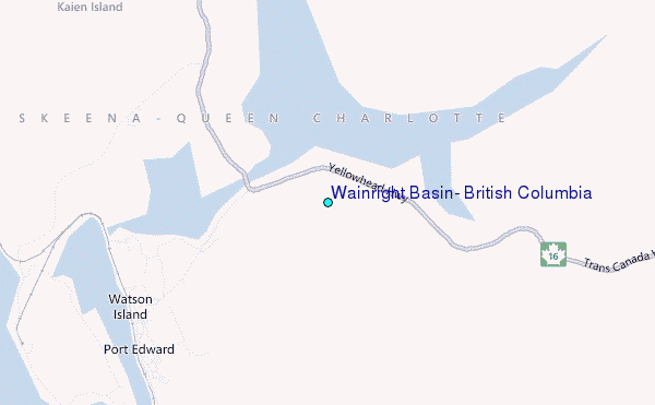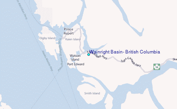 Use this relief map to navigate to tide stations, surf breaks and cities that are in the area of Wainright Basin, British Columbia.