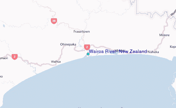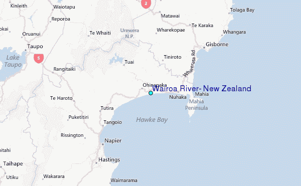 Use this relief map to navigate to tide stations, surf breaks and cities that are in the area of Wairoa River, New Zealand.
