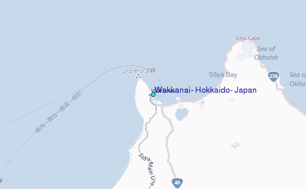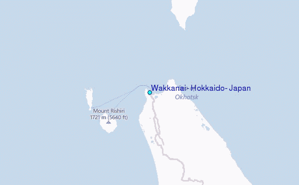 Use this relief map to navigate to tide stations, surf breaks and cities that are in the area of Wakkanai, Hokkaido, Japan.
