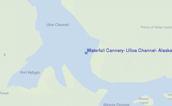 Use this relief map to navigate to tide stations, surf breaks and cities that are in the area of Waterfall Cannery, Ulloa Channel, Alaska.